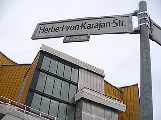 ・1991年8月17日ザルツブルク市は、「ジークムント広場」を「ヘルベルト・フォン・カラヤン広場」に改名し、銘板の除幕式が行われた。エリエッテ・フォン・カラヤン未亡人、ザルツブルク市および州の高官、ザルツブルク音楽祭総裁のアルベルト・モーザー博士、そして多くの関係者が出席した。