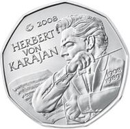 2008年5月7日、オーストリア国立銀行はカラヤン生誕100周年を記念して、額面5ユーロの銀貨を25万枚発行した。
